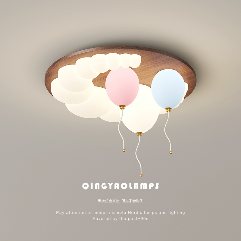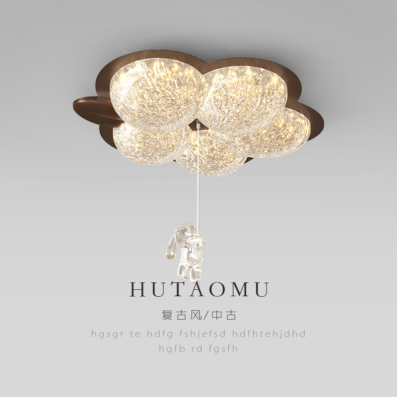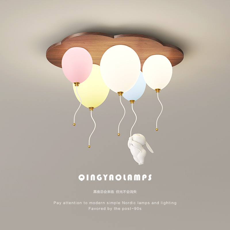Bubudeng クリエイティブバルーン寝室の天井ランプルームランプ目の保護無垢材子供部屋ウサギのシャンデリア