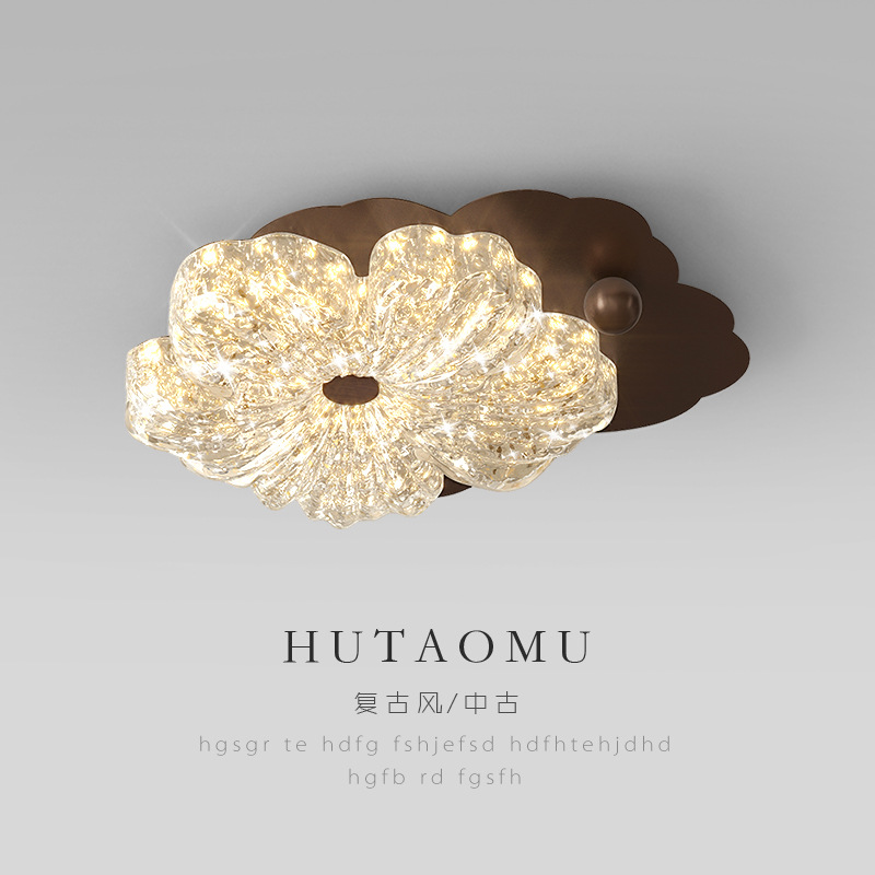 フレンチゴールド箔シェルベッドルームシーリングランプ目の保護アンティークフレンチスタディルームマスターベッドルームランプシンプルなレトロなクロークライト