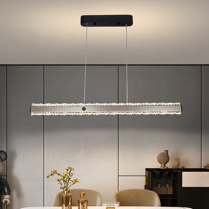 レストランシャンデリア、ワンラインロングシャンデリア、モダン北欧ライト高級バーテーブル、ダイニングテーブル目の保護ランプ、ミニマリストスタイルのダイニングルームランプ