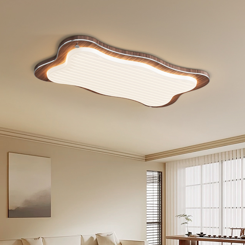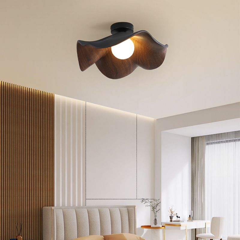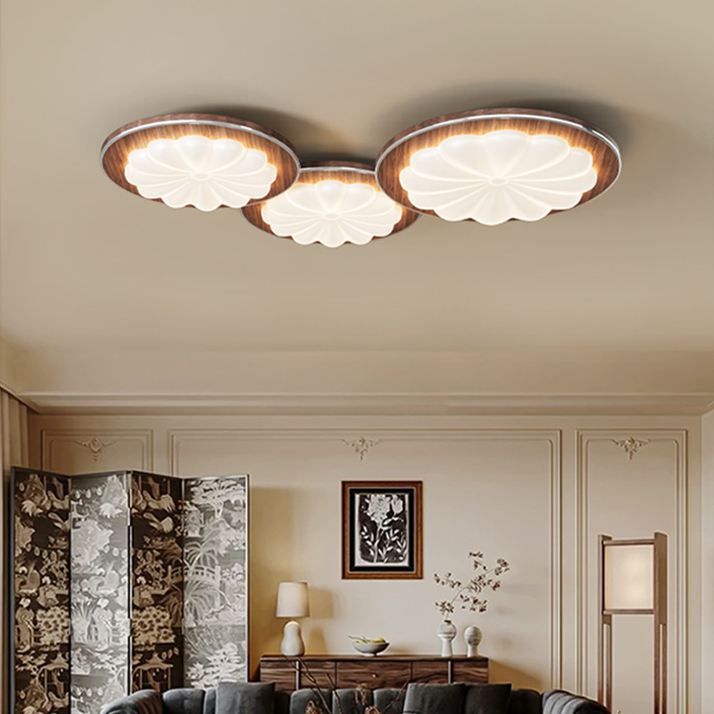 リビングライトクリエイティブくるみ木目花型シーリングライト中古風寝室ルームライトスマート音声制御調光