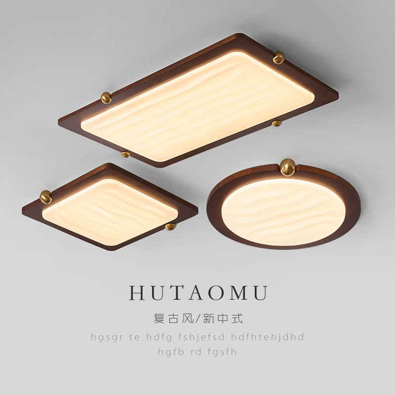 リビングライト中古風胡桃木目天井灯創意小赤豆寝室部屋灯携帯電話リモコンスイッチ