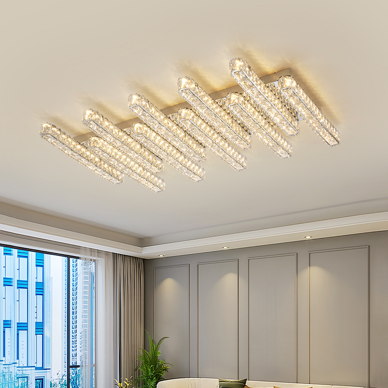 リビングルームランプクリスタルLEDシーリングベッドルームランプモダンシンプルな雰囲気の3部屋と2つのホールランプの組み合わせ家全体パッケージ