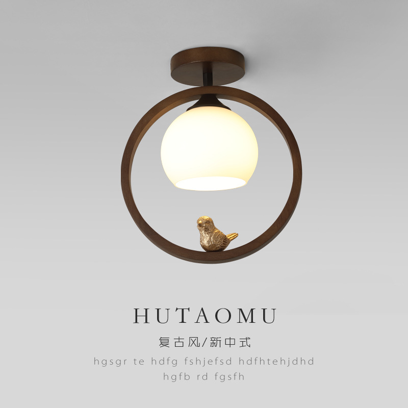 新しい中国風の通路ライトシンプルな無垢材の寝室のベッドサイドの鳥の壁ランプリビングルームの背景の壁ランプクリエイティブティールームシャンデリア