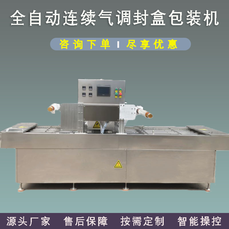 全自動活海鮮充填酸素調包装機ボタン肉封碗封箱機ゼリー二重位気調膜機