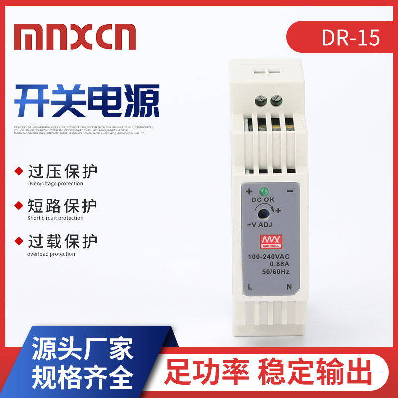 DR-15スイッチング電源24v0.63a5v2.4 a121.025a超薄小体積レール式電源