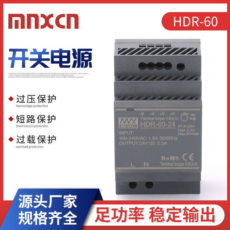 HDR-60スイッチング電源モジュールレール式スイッチング電源5/12/15/24/48V直流60WDR60