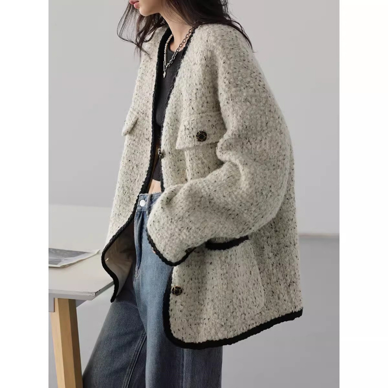 米白色の小香風のコートの女性春秋の新型のフランスの名媛のデザイン感の百合の上着