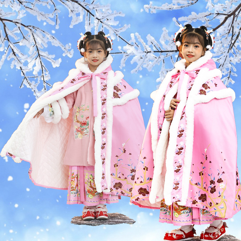 竜年拝年服の女の子の漢服とベルベットの厚い唐服の馬のスカートの中国風のお祝いの秋冬のスーツの新型のマント