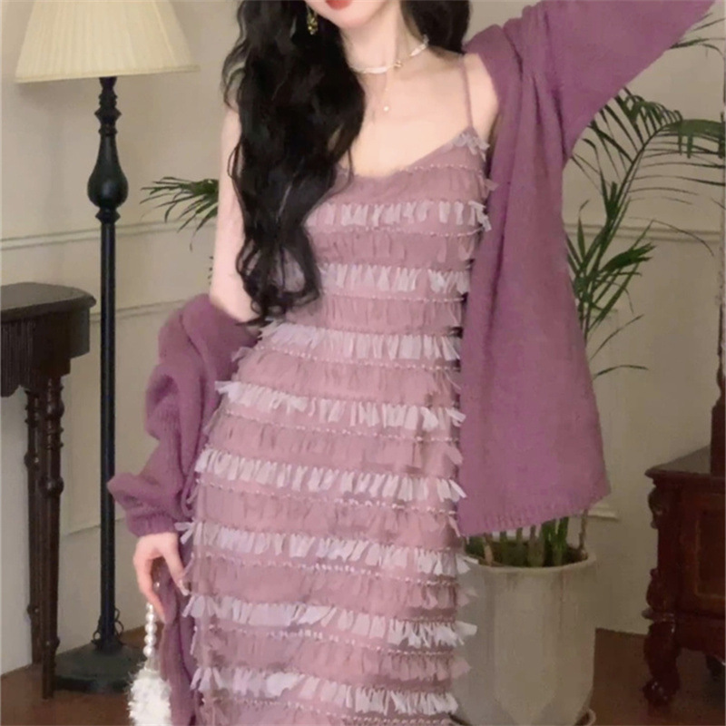 茶系は純色のセクシーなカーディガンセットを着ています。