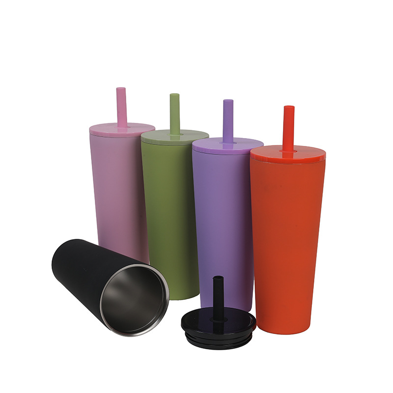 国境を越えたスポットカスタムロゴ二重プラスチックストローカップシンプル多色オプションフロスト大容量カップ
