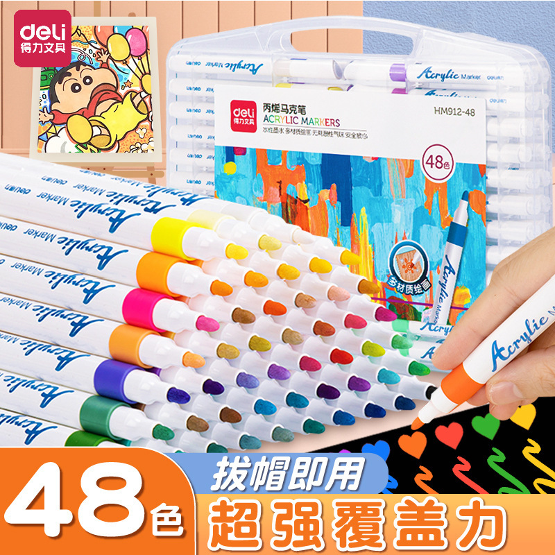 有力HM912アクリルマークペン子供アクリルペン透けない色水性アクリル絵筆24色36色48色