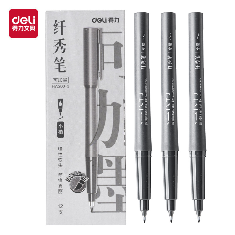 デリ HW200 スリムストレート液体詰め替えインク美容ペンソフトペン書道小楷書極細筆フックラインペン