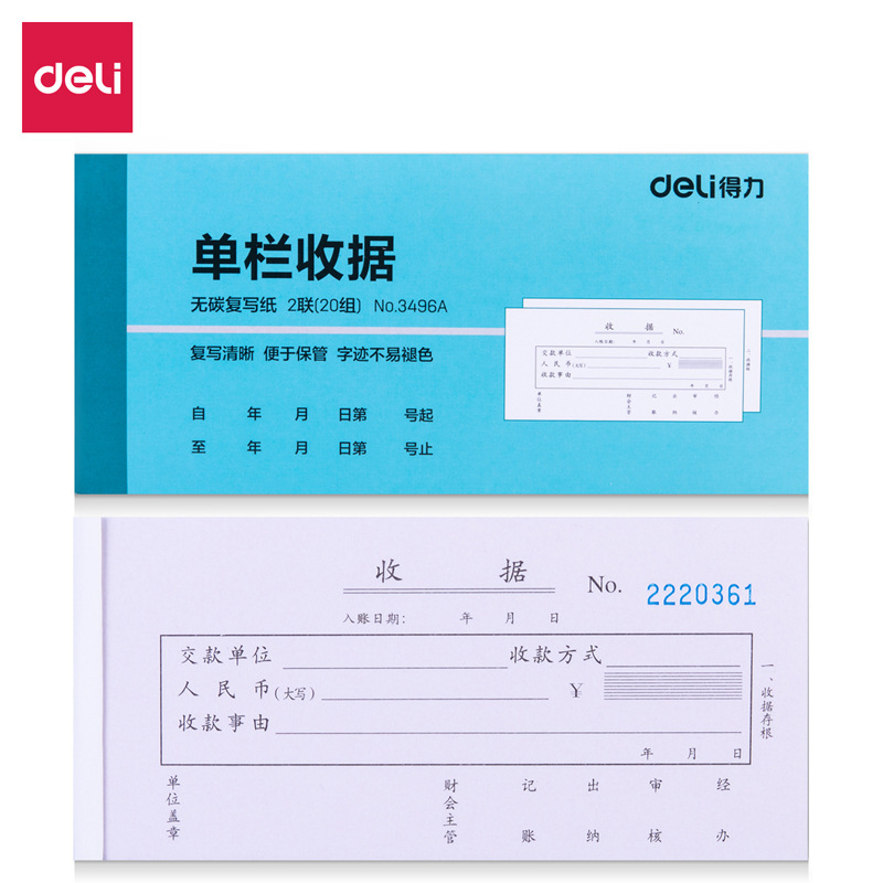 有力3496a/3497a単欄領収書無炭素複写会計証明書経理伝票領収書事務用品