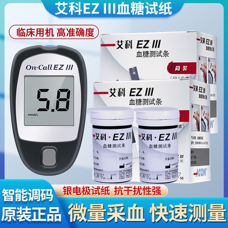 艾科ez 3血糖試験紙eziii自動試験機家庭用50枚バレル試験紙 + 血糖計1台