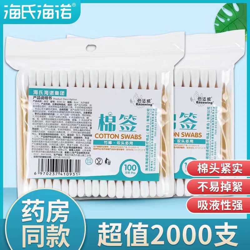海氏海諾倍適威綿棒100本袋入り竹棒綿棒ダブルヘッド使い捨て家庭用綿棒綿棒