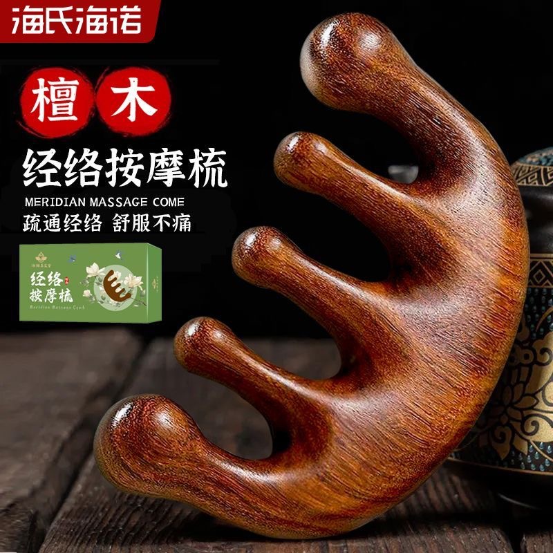 海氏海諾檀木経絡梳マッサージコーム頭部五骨梳丸木コームマッサージツール