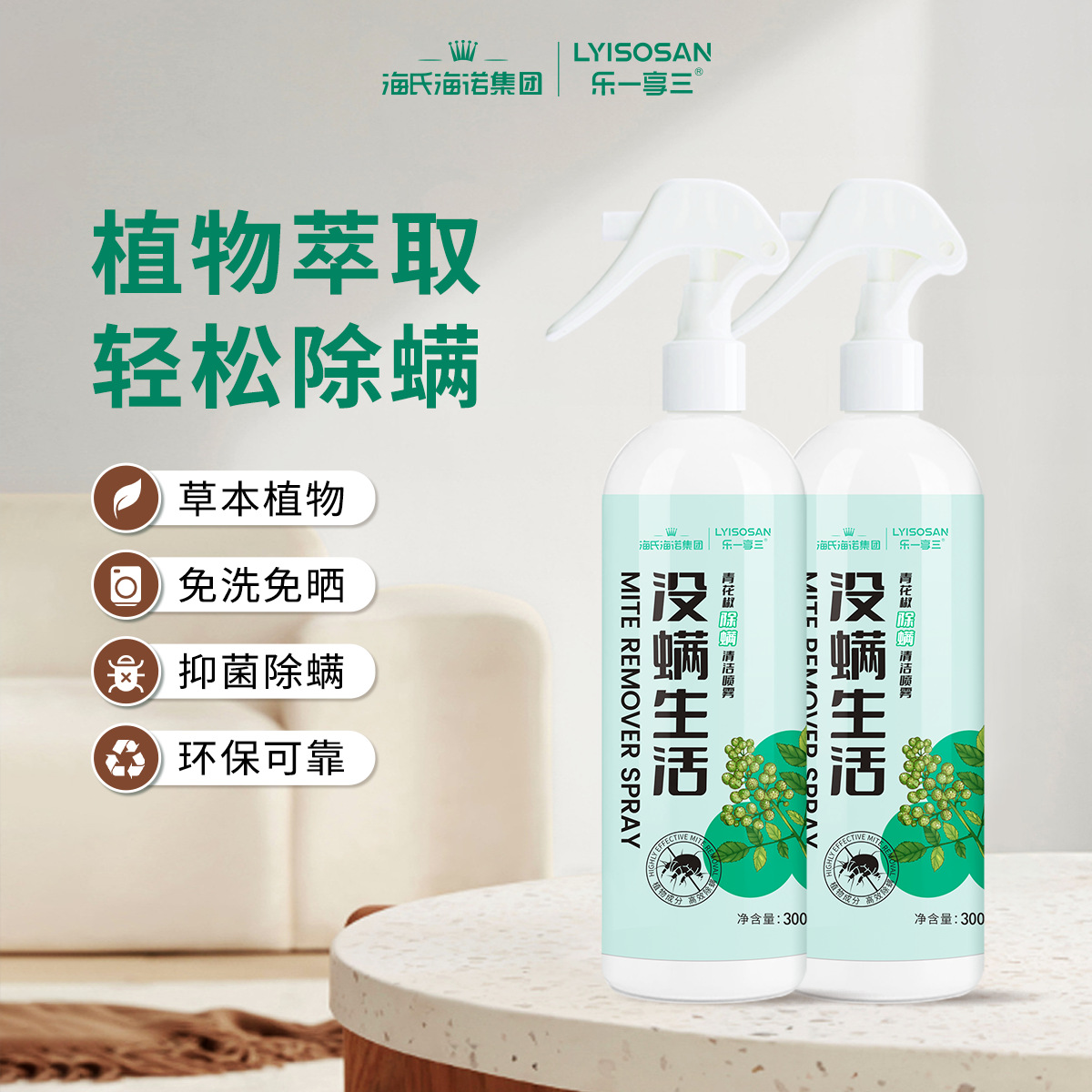 Haishi Hainuo ダニ除去スプレー 家庭用寝具ダニ除去スプレー 洗わないダニ除去スプレー グリーンペッパー入り 300ml