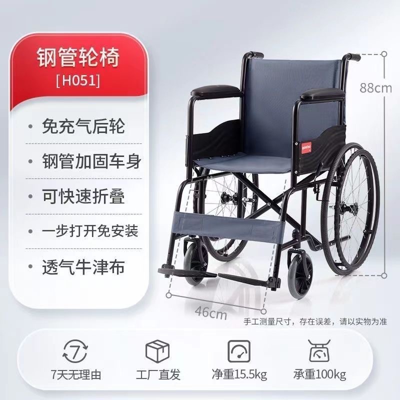 魚躍手動車椅子全鋼管多機能折り畳み式携帯無充填式後輪老人車椅子H051