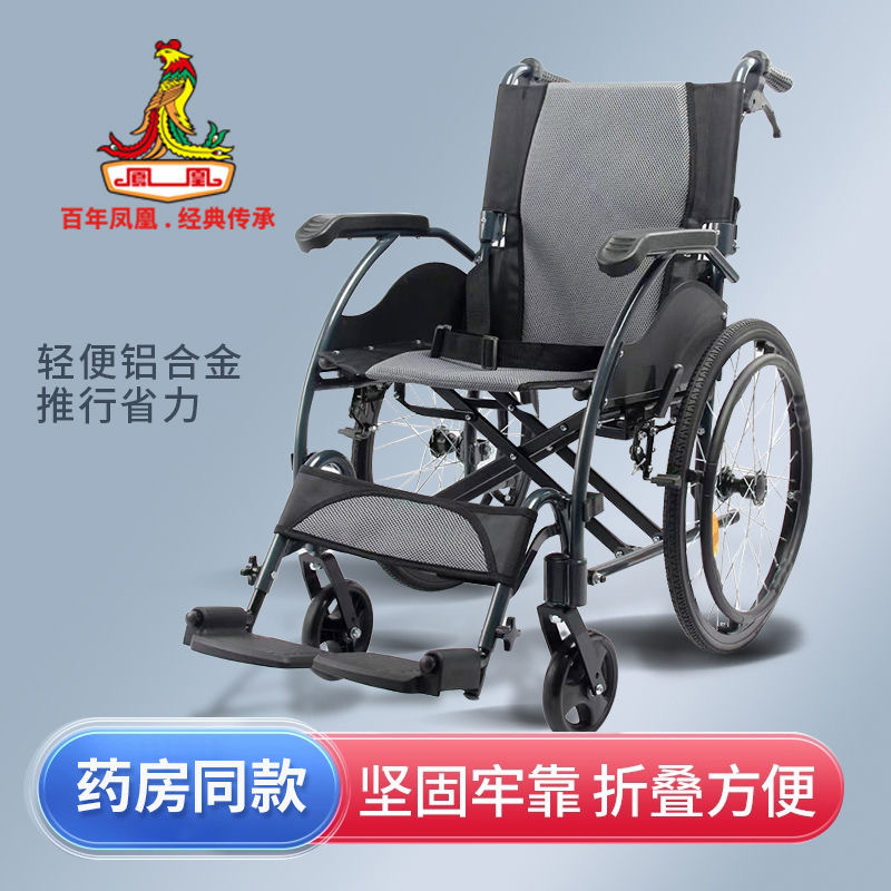 フェニックス車椅子軽量折り畳み老人小型軽量携帯旅行アルミ合金車椅子PHW863LAJ(灰祥)