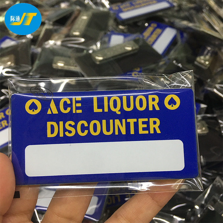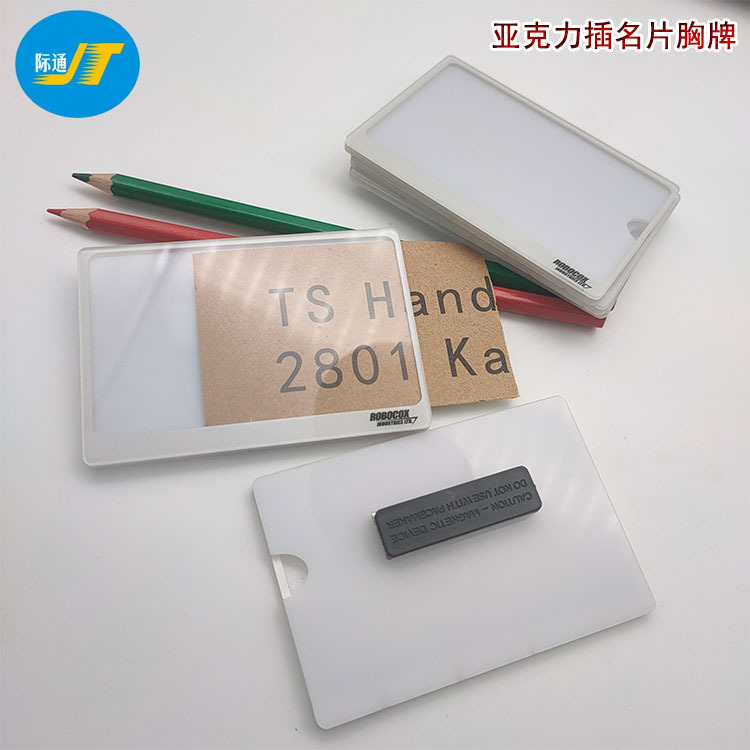 創意は名刺のプラスチックの胸札を挿して高級水晶のアクリルの工号の磁石会社のバッジを作ることができます。
