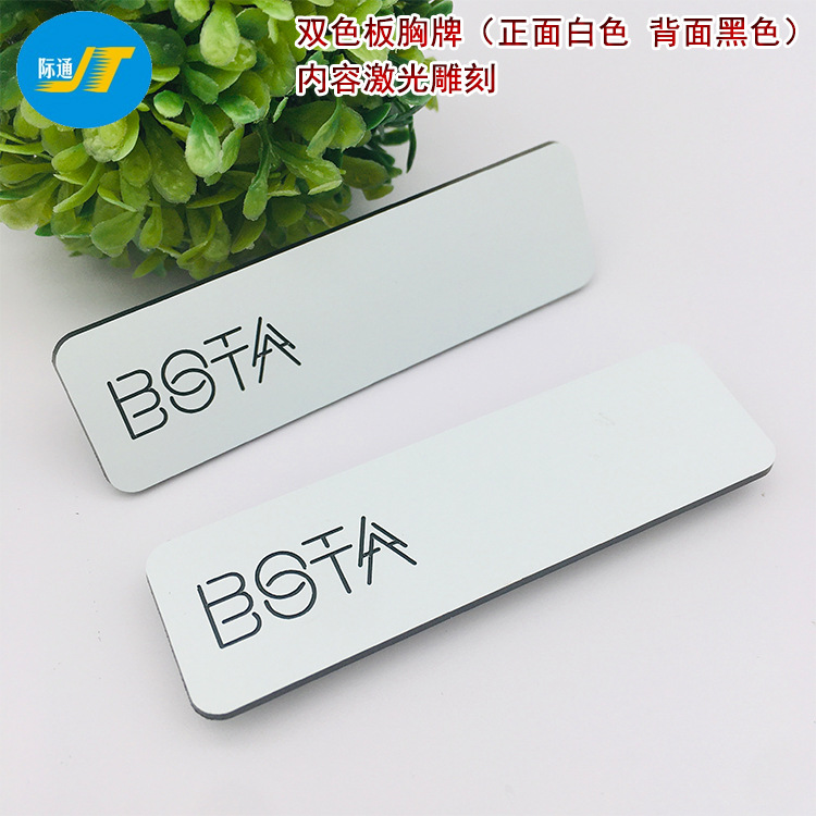 創意高級白色二色板胸牌制作logoレーザー彫刻工号牌シルク印プラスチックピン工牌