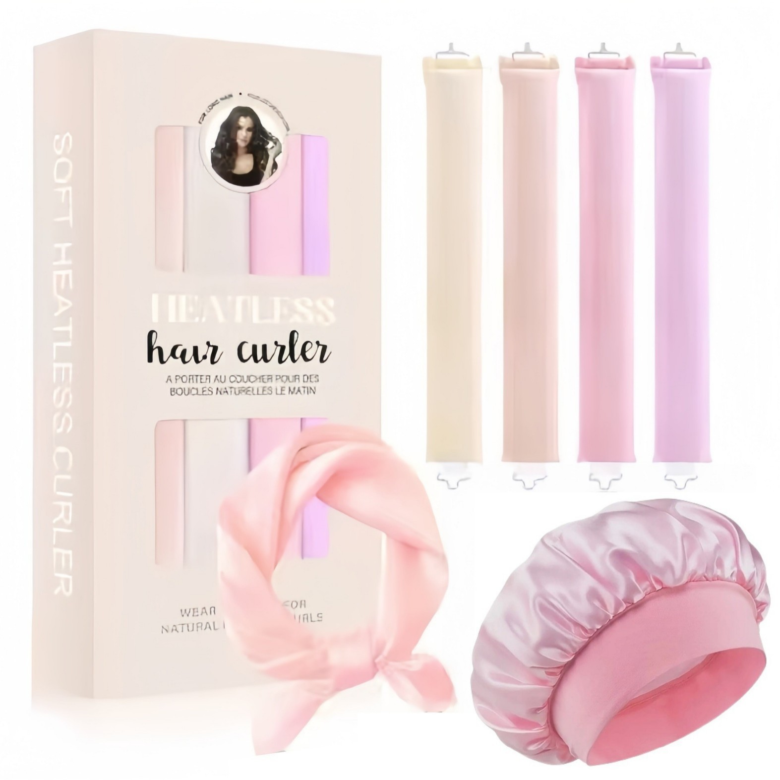 カーリングアーティファクトカーリングバレルクリップセット、怠け者が寝るためのヒートレスヘアアイロン、長持ちするシルクコットンストリーマー、ヘアリングスタイリング