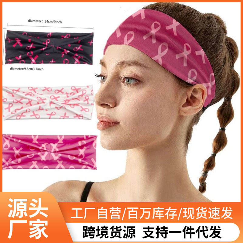 国境を越えた新しい愛乳日プリントヘアバンドは、乳房の女性のヘアバンドの弾力的なヘアバンドのリボンの髪飾りを愛しています