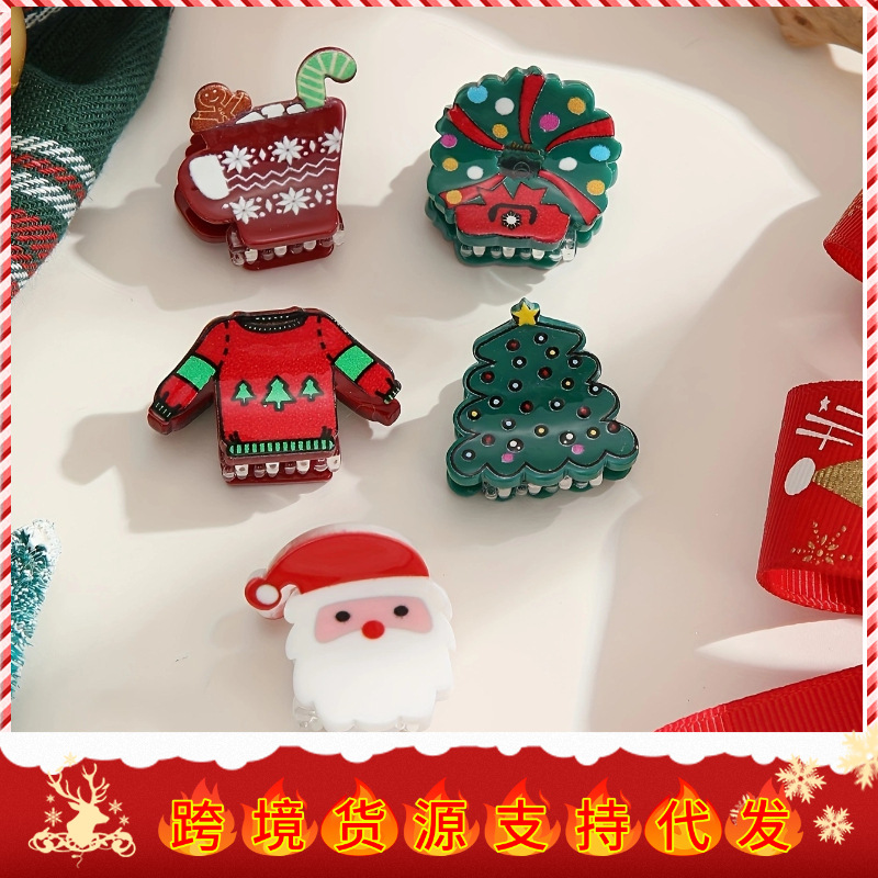新しいクリスマスヘアアクセサリー、赤いサンタクロースヘアアクセサリー、かわいい後頭部クリップ、スノーフレークサメクリップ、サイドクリップ