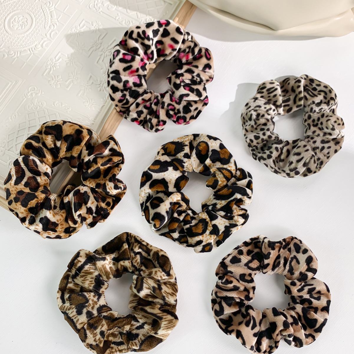 韓国系豹紋波点大腸髪輪皮筋女髪ひもシンプル気質肥腸頭ひも韓国絨毛ネットレッド