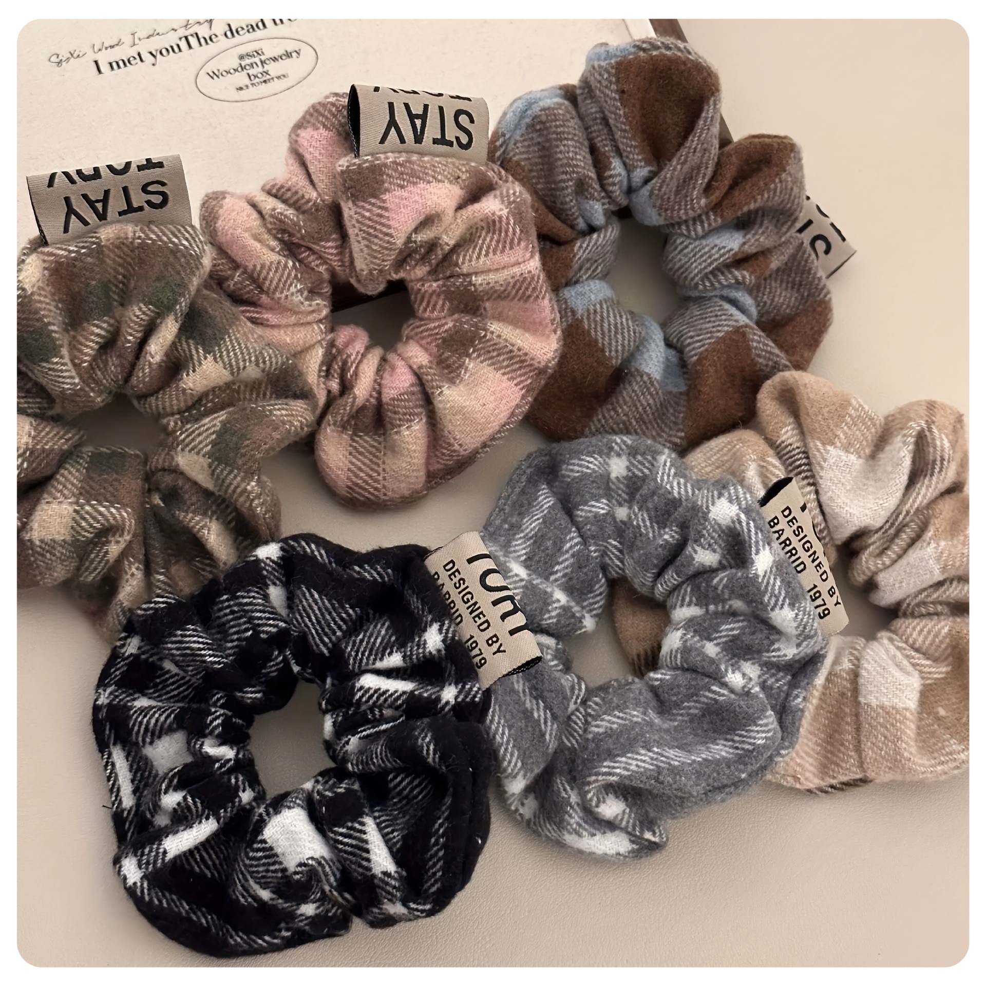 韓国版新商品秋冬髪飾りレトロ格子大腸シュシュ学院風丸子頭髪飾り髪飾り髪ひもシュシュ