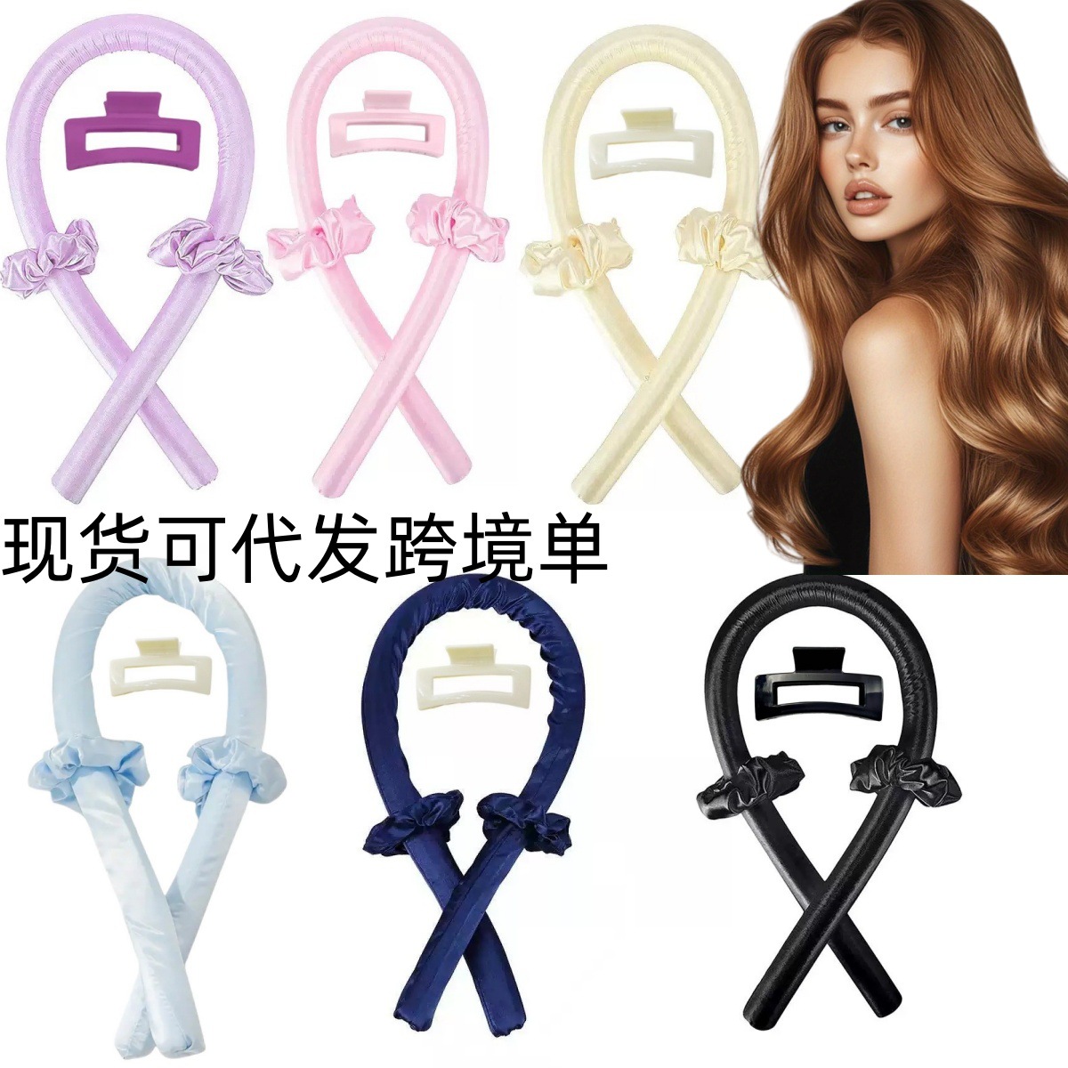 新しい熱なしヘアアイロン、ヨーロッパとアメリカのクロスボーダー、髪を傷つけないゴム、3cmスリーピングビッグウェーブ、シンプルなフック付きメーカー