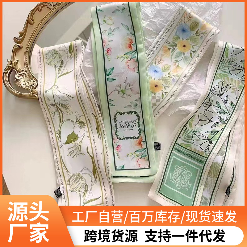新商品の国境を越えたプリントのシルクタオルの細くて狭い長いバーの装飾に合わせて、文芸の長いタイプのヘアバンドのリボンのマフラーを結びます。