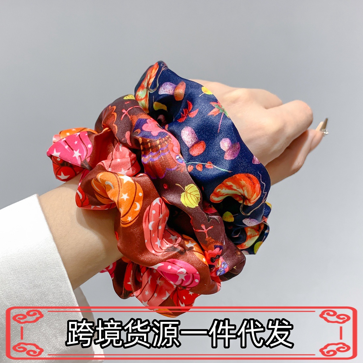 国境を越えたヨーロッパとアメリカのサテン生地豚大腸外国貿易ヘアゴム花ゴムバンドヘアゴムヘアアクセサリー大腸ヘアゴム