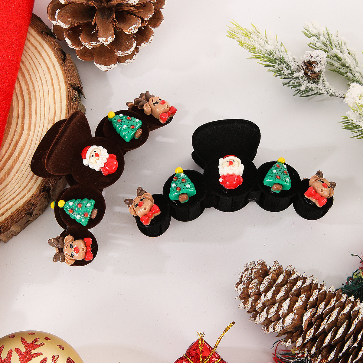 クロスボーダー新作クリスマスヘアアクセサリー スクエアクリップ 聖人クリップ お祭り雰囲気 後頭部ヘアシャーククリップ ヘアグリップ バッチ