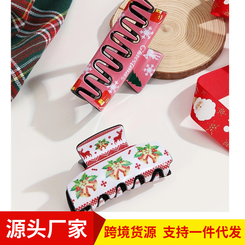 クロスボーダー新作クリスマスヘアアクセサリー スクエアクリップ ホリデー雰囲気 バックヘアシャーククリップ ヘアクリップ ヘアグリップ