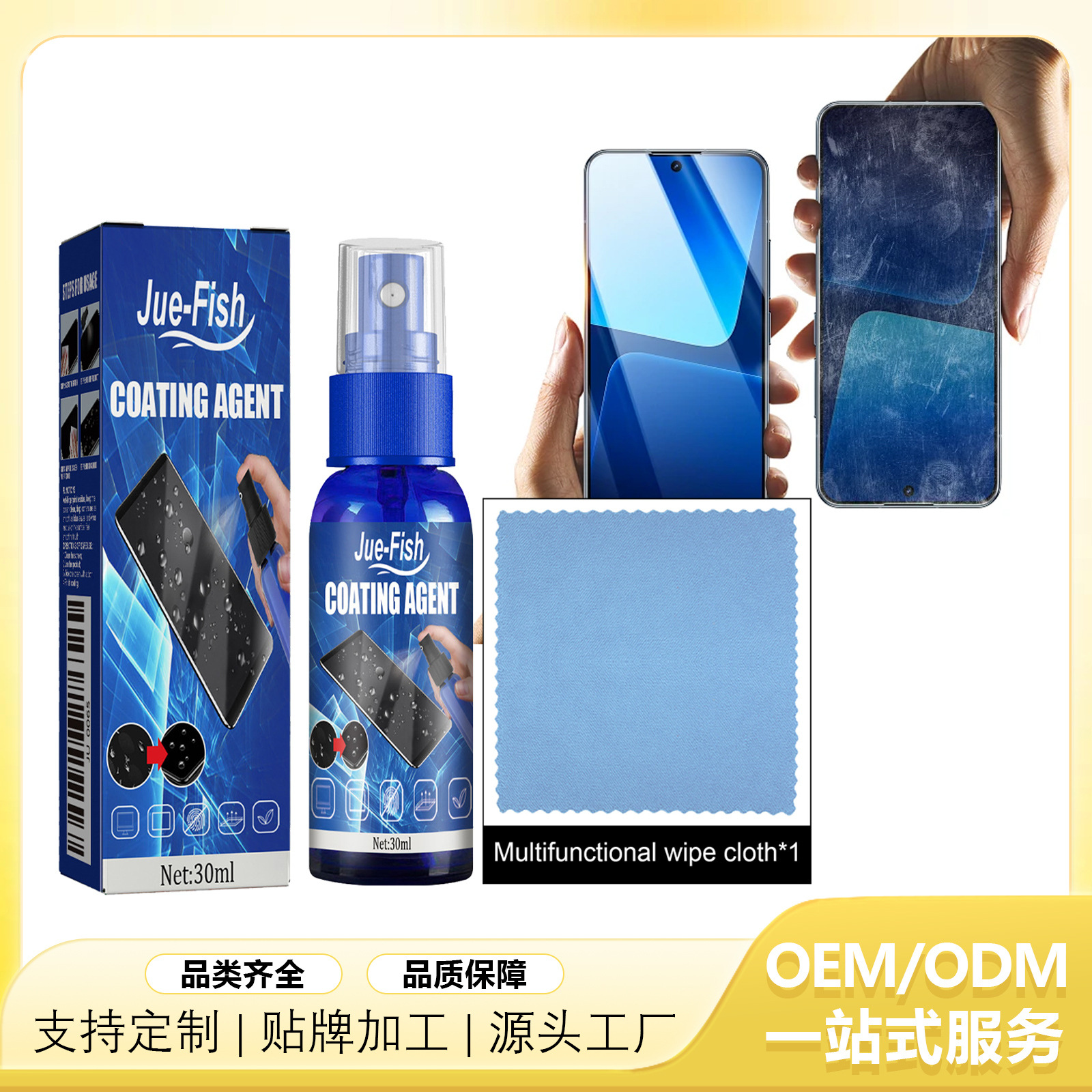 Jue-fishスクリーンコーティング剤携帯電話スクリーン洗浄剤指紋防止ガラス疎水性疎水性コーティング液