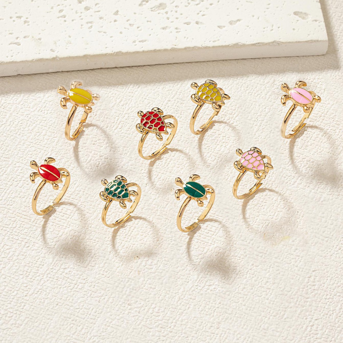 夏の海の風合いの小さな亀の指輪、赤、緑、ピンク、黄色、可愛くて繊細でコンパクト、2025年新作