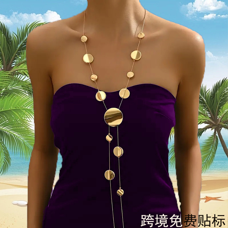 欧米のクロスボーダーの女性の長いネックレスのファッションの気質のアクセサリーの丸い形の透かし彫りの幾何学のチェーンのネックレス