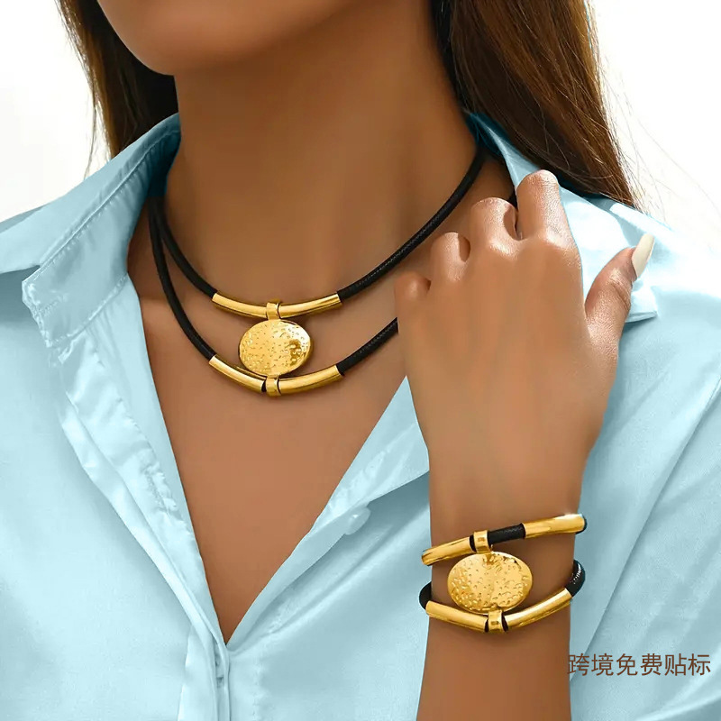 ヨーロッパとアメリカのクロスボーダーパーソナライズされた二層編組ロープチューブブレスレットネックレスジュエリーセットクリエイティブ女性ジュエリーセット卸売