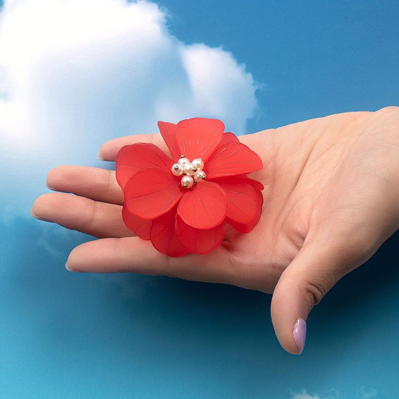 大きなアクリル真珠花夏女性休暇旅行独立日クリスマスプレゼント指輪
