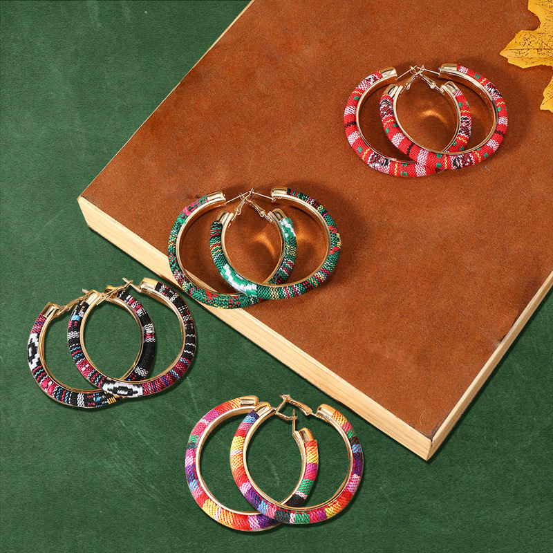 国境を越えた欧米のボヘミアン風C形カラー布イヤリング