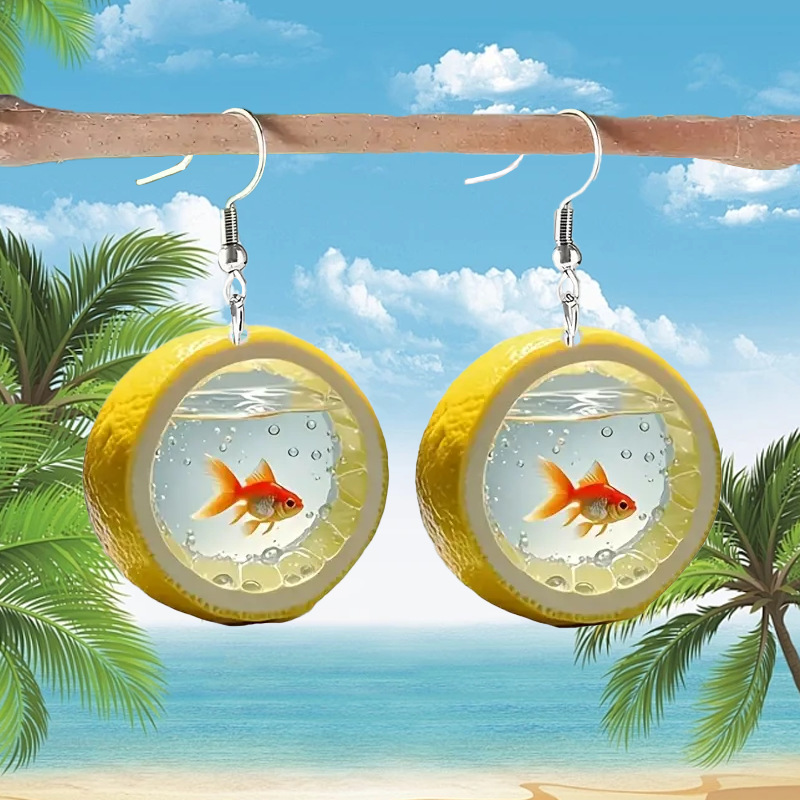 果物の立体レモン小魚のイヤリング平面2dアクセサリーの清新なファッション創意アニメ
