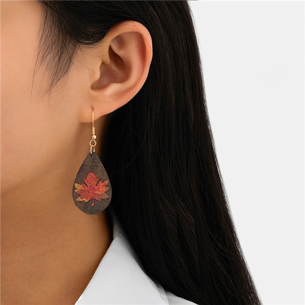 1組の水滴の形の木製のイヤリングのカエデの葉のプリントの高級なファッションの精巧な古風の日常の組み合わせは贈り物を送ります。