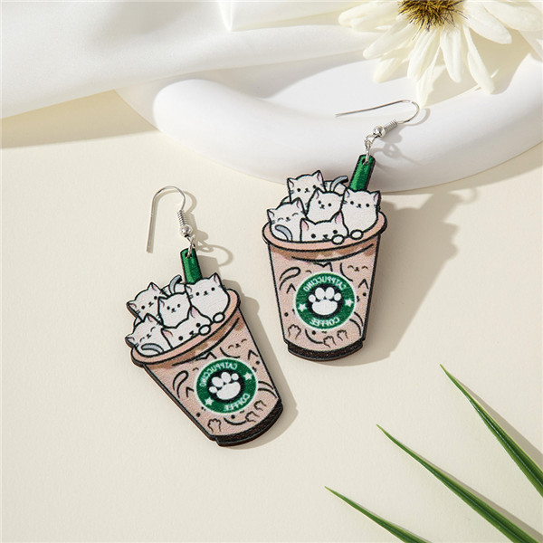 1対のミルクティーの子猫の杯のイヤリングの耳飾りはかわいいです。