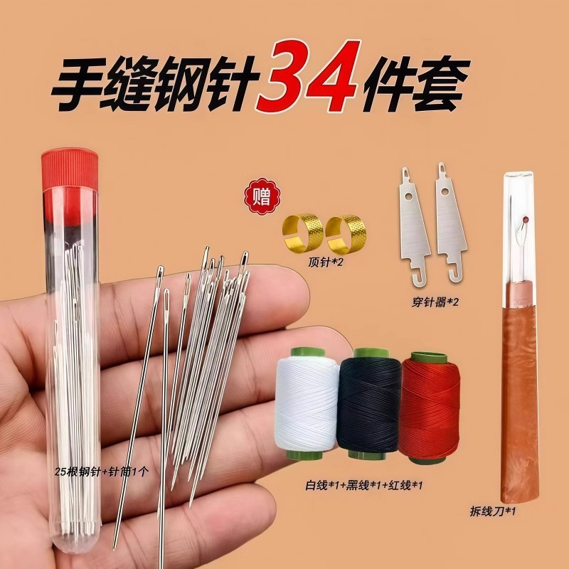36本針セット、大きな鼻のスチール針、キルト縫製、高齢者用針、家庭用縫製、昔ながらのアップグレードされた大きな目の針