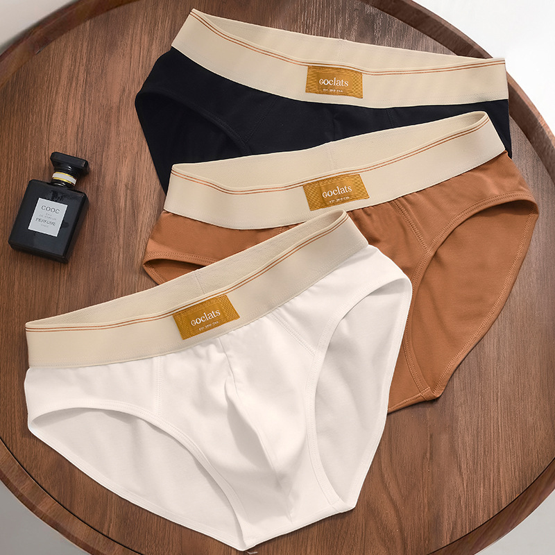 2025m年新作純綿シンプルメンズ下着、トレンディなウエストバンド、無地三角パンツ、ミッドウエスト、通気性、卸売