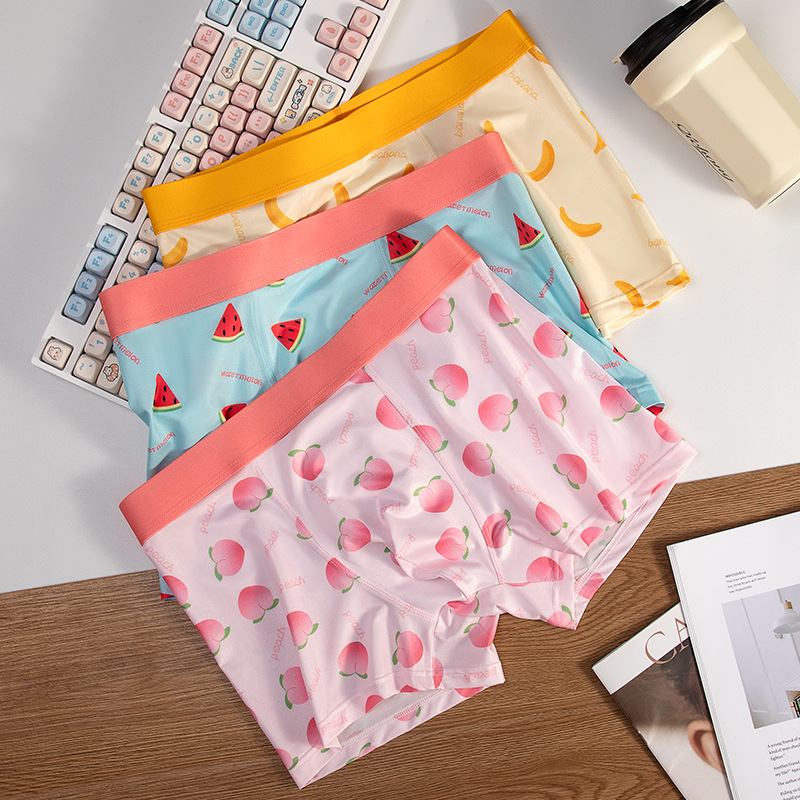 2025m Lan 新アイスシルクフルーツメンズ下着ピンクパーソナライズされたプリントボーイズボクサーブリーフミッドウエスト下着男性