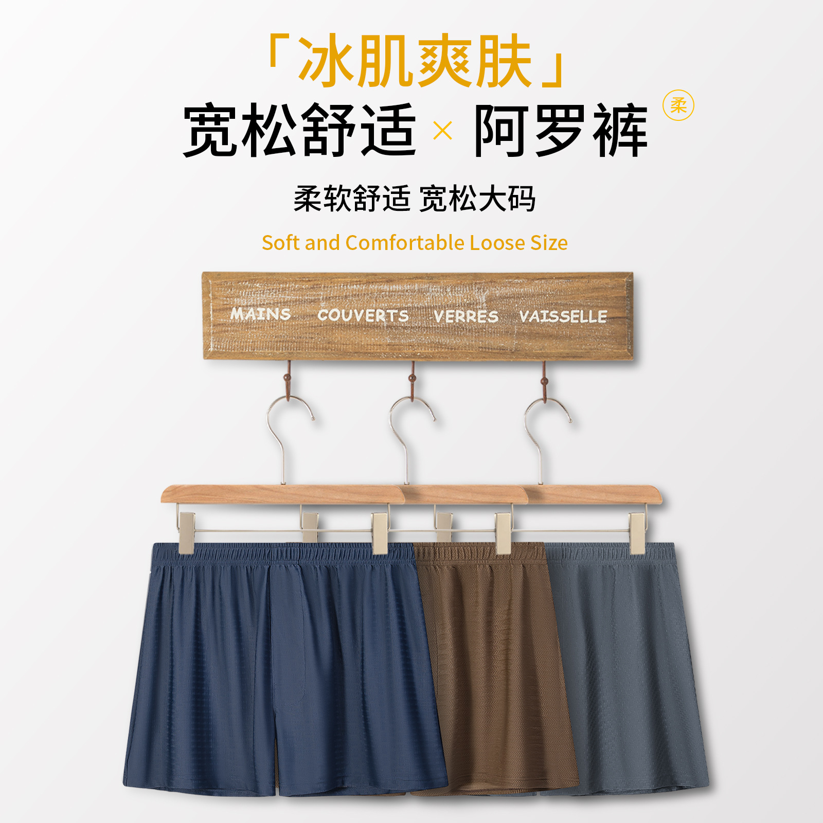 2025m年新作アイスシルクカジュアルメンズアロパンツ、ゆったりシームレスショートパンツ、メンズ四角パンツ、パジャマ