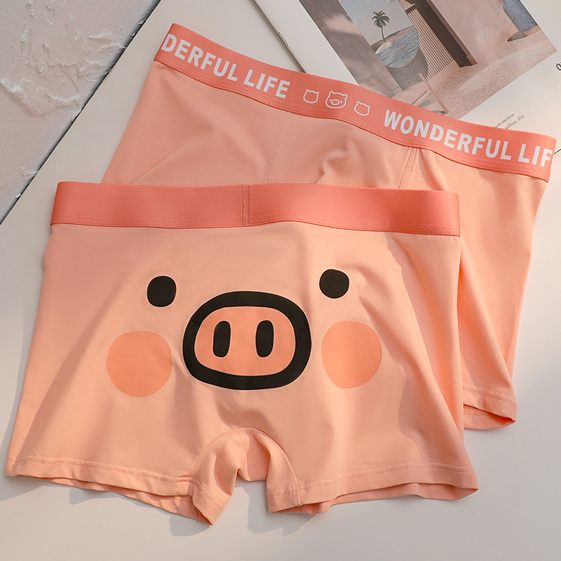 2025m Lan 新しいスタイルの豚の形をした男の子用メンズ下着、ピンクの個性的な男の子用ボクサーパンツ、ミッドウエストのかわいい男性用下着