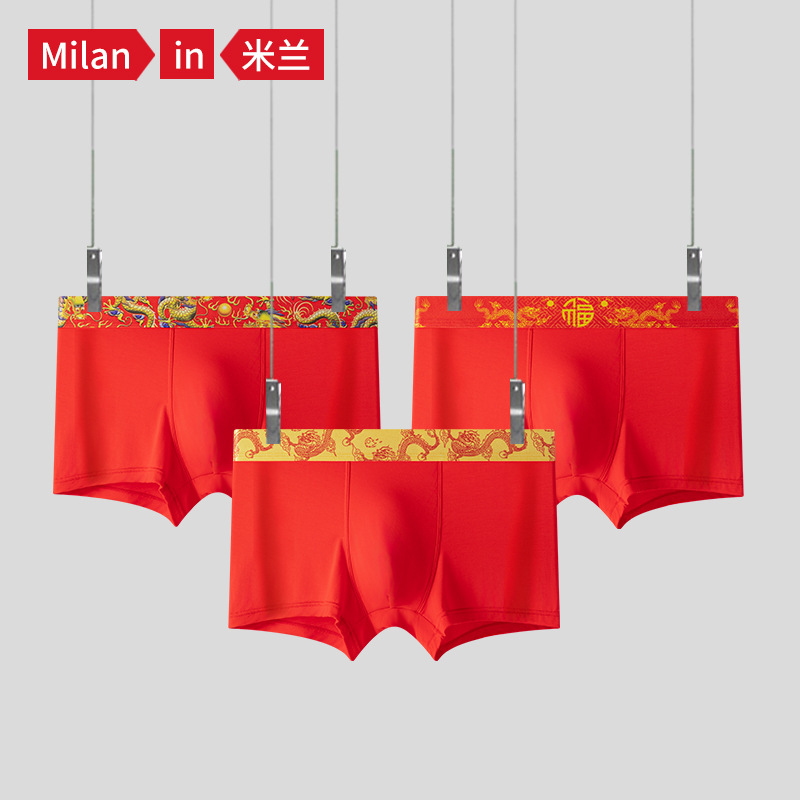 2025m ラン新作干支年赤龍ウエストモーダルメンズ下着トレンディなプリントボクサーパンツ卸売